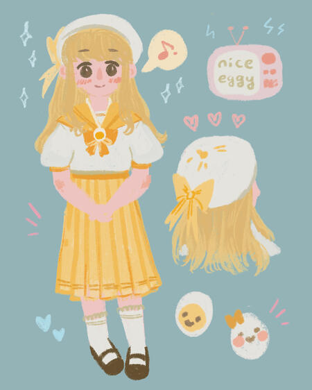 Vtuber concept art, streaming background, loading screen, and schedule template for niceeggy (https://m.twitch.tv/niceeggy)